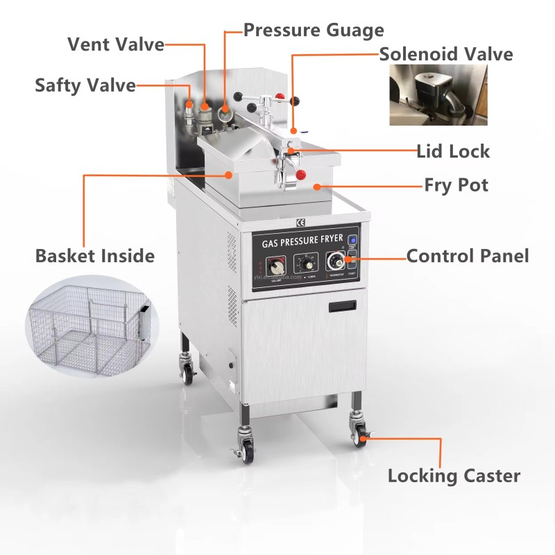 Esta máquina combina la fritura tradicional con la cocción a presión, lo que resulta en alimentos que son crujientes por fuera y jugosos por dentro. Cuenta con una tapa hermética que sella el aparato, permitiendo que la presión se acumule y que las temperaturas de cocción sean más altas que en una freidora convencional.